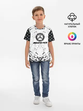 Детская базовая футболка / Mercedes | брызги красок,