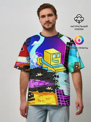 Мужская футболка оверсайз / GEOMETRY DASH / ГЕОМЕТРИ ДАШ