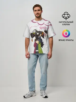 Мужская футболка оверсайз / Гию и Незуко Kimetsu no Yaiba