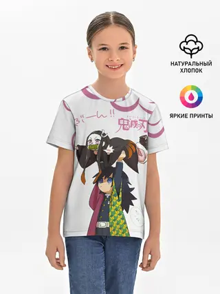 Детская базовая футболка / Гию и Незуко Kimetsu no Yaiba