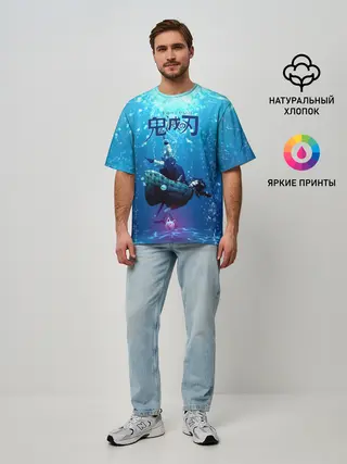 Мужская футболка оверсайз / Дыхание Воды - Гию Томиока