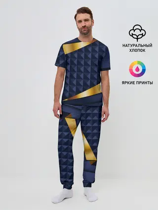 Мужская пижама с брюками / 3D плитки с золотыми вставками