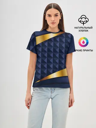 Женская базовая футболка / 3D плитки с золотыми вставками