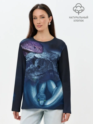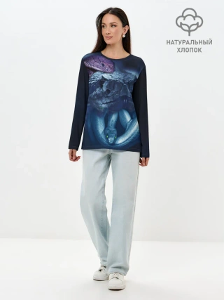 Рюкзак джинсовый / ЗМЕЯ НА КАМНЕ НА ЧЕРНОМ ФОНЕ