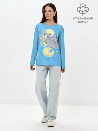 Лонгслив женский. Хлопок / Пони в звёздном небе