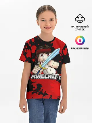 Женская футболка оверсайз / Стив с мечом Minecraft