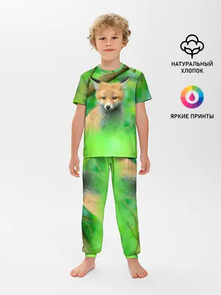 Детская пижама с брюками / Лисенок в зеленом лесу