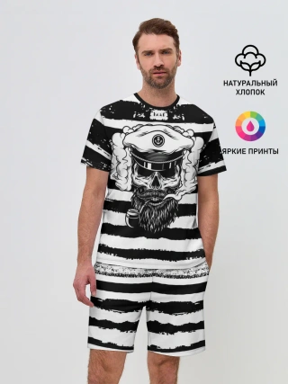 Мужской костюм с шортами / ТЕЛЬНЯШКА ВМФ | ЧЕРЕП ФУРАЖКА