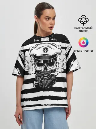 Женская футболка оверсайз / ТЕЛЬНЯШКА ВМФ | ЧЕРЕП ФУРАЖКА
