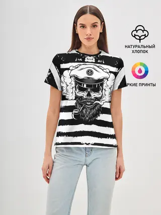 Женская базовая футболка / ТЕЛЬНЯШКА ВМФ | ЧЕРЕП ФУРАЖКА