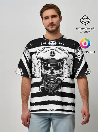 Мужская футболка оверсайз / ТЕЛЬНЯШКА ВМФ | ЧЕРЕП ФУРАЖКА
