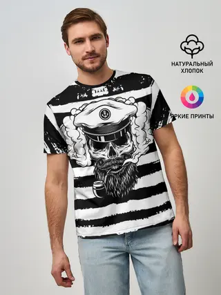 Мужская базовая футболка / ТЕЛЬНЯШКА ВМФ | ЧЕРЕП ФУРАЖКА