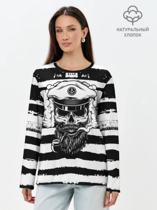 Лонгслив женский. Хлопок / ТЕЛЬНЯШКА ВМФ | ЧЕРЕП ФУРАЖКА