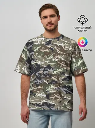 Мужская футболка оверсайз / Камуфляж для рыбака
