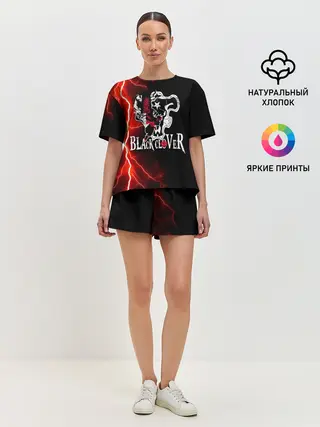 Женская пижама с шортами / Черные быки | Черный Клевер