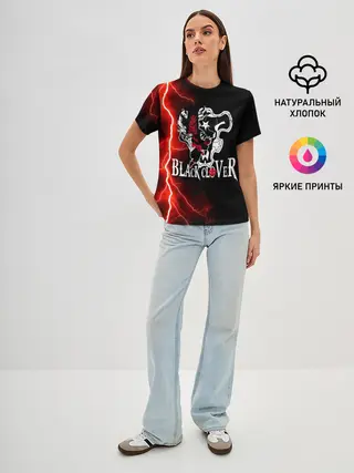 Женская футболка оверсайз / Черные быки | Черный Клевер