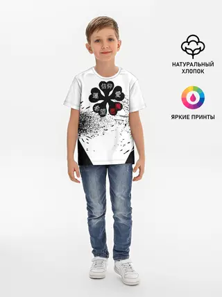 Детская базовая футболка / Чёрный клевер с иероглифами