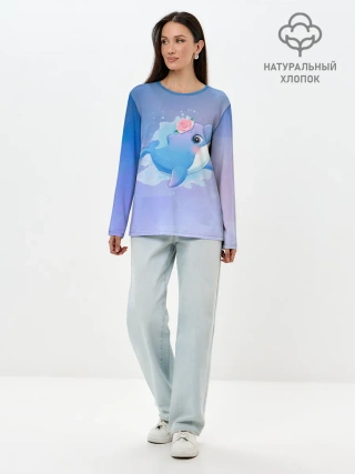 Лонгслив женский. Хлопок / Дельфинчик
