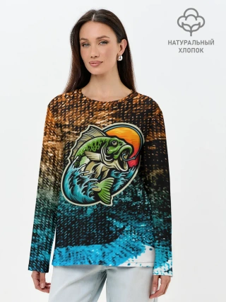 Лонгслив женский. Хлопок / Рыба на крючке