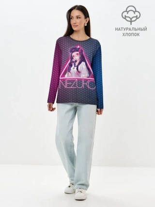 Лонгслив женский. Хлопок / Незуко Камадо в треугольнике