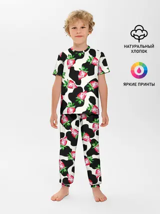 Детская пижама с брюками / Клубника на коровьей шкуре