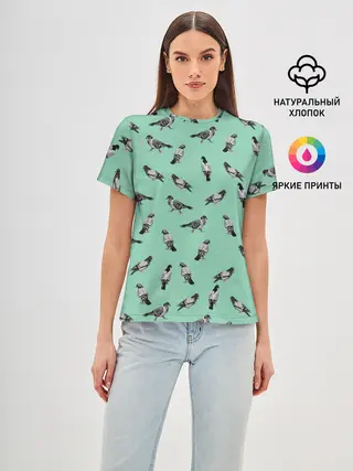Женская базовая футболка / Голуби на зеленом