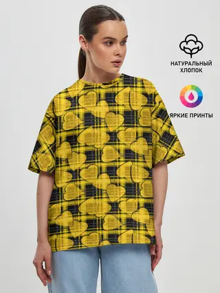 Женская футболка оверсайз / Желто-черный модный узор