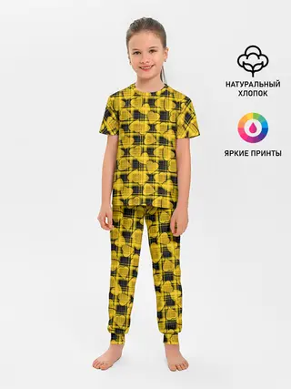 Детская пижама с брюками / Желто-черный модный узор