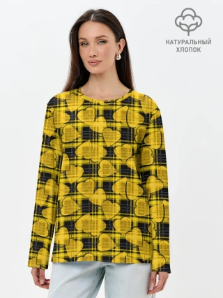 Лонгслив женский. Хлопок / Желто-черный модный узор