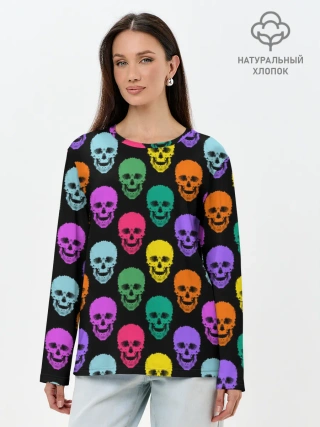 Лонгслив женский. Хлопок / Разноцветные черепа . Готика