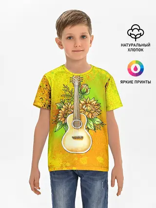 Детская базовая футболка / Гитара и подсолнухи