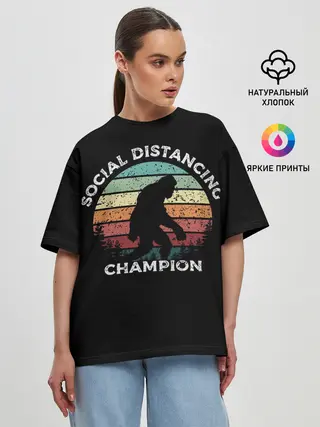Женская футболка оверсайз / Чемпион социальной дистанции