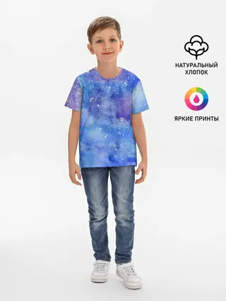 Детская базовая футболка / Акварельные разводы и брызги красок