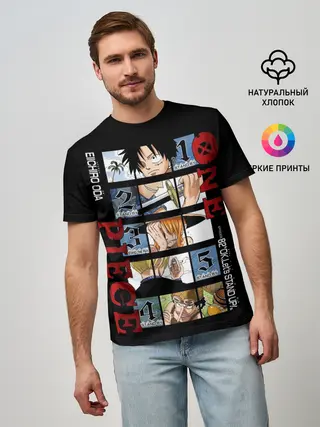 Мужская футболка оверсайз / Пятерка из Ван Пис