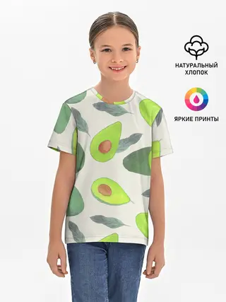 Детская базовая футболка / Авокадо - фруктовый паттерн