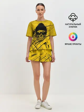 Женская пижама с шортами / Череп Хипстер Гранж Брызги