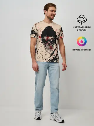 Мужская базовая футболка / Череп Хипстер Брызги Краски