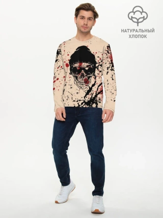 Мужской лонгслив базовый / Череп Хипстер Брызги Краски
