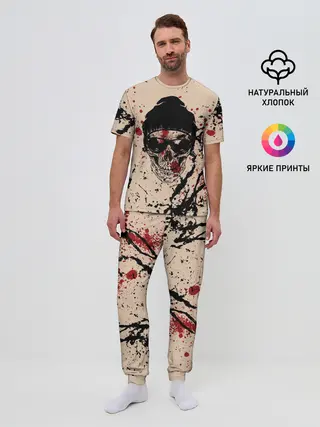 Мужская пижама с брюками / Череп Хипстер Брызги Краски