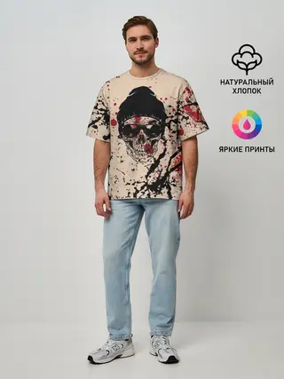 Мужская футболка оверсайз / Череп Хипстер Брызги Краски