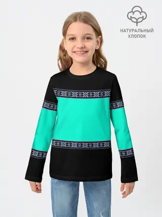 Мужской лонгслив базовый / Черно-бирюзовый узор