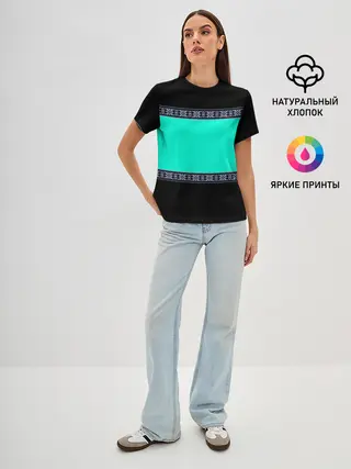 Женская футболка оверсайз / Черно-бирюзовый узор