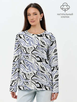 Лонгслив женский. Хлопок / Абстрактный сиренево-черный