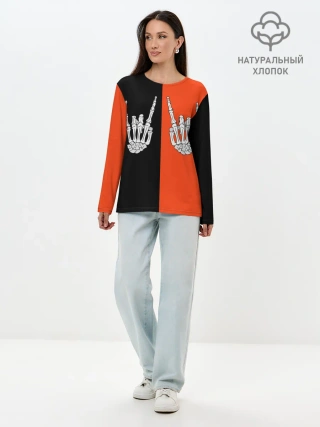 Лонгслив женский. Хлопок / Ладошки скелета