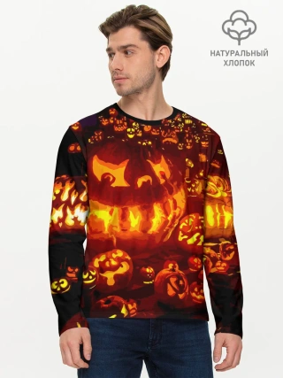 Мужской лонгслив базовый / Тыквы на Хэллоуин