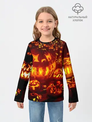 Детский лонгслив / Тыквы на Хэллоуин