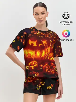 Женская пижама с шортами / Тыквы на Хэллоуин