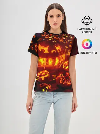 Женская базовая футболка / Тыквы на Хэллоуин