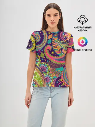 Женская базовая футболка / Яркий красочный узор