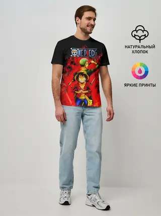 Мужская базовая футболка / Зоро и Луффи в огне One Piece
